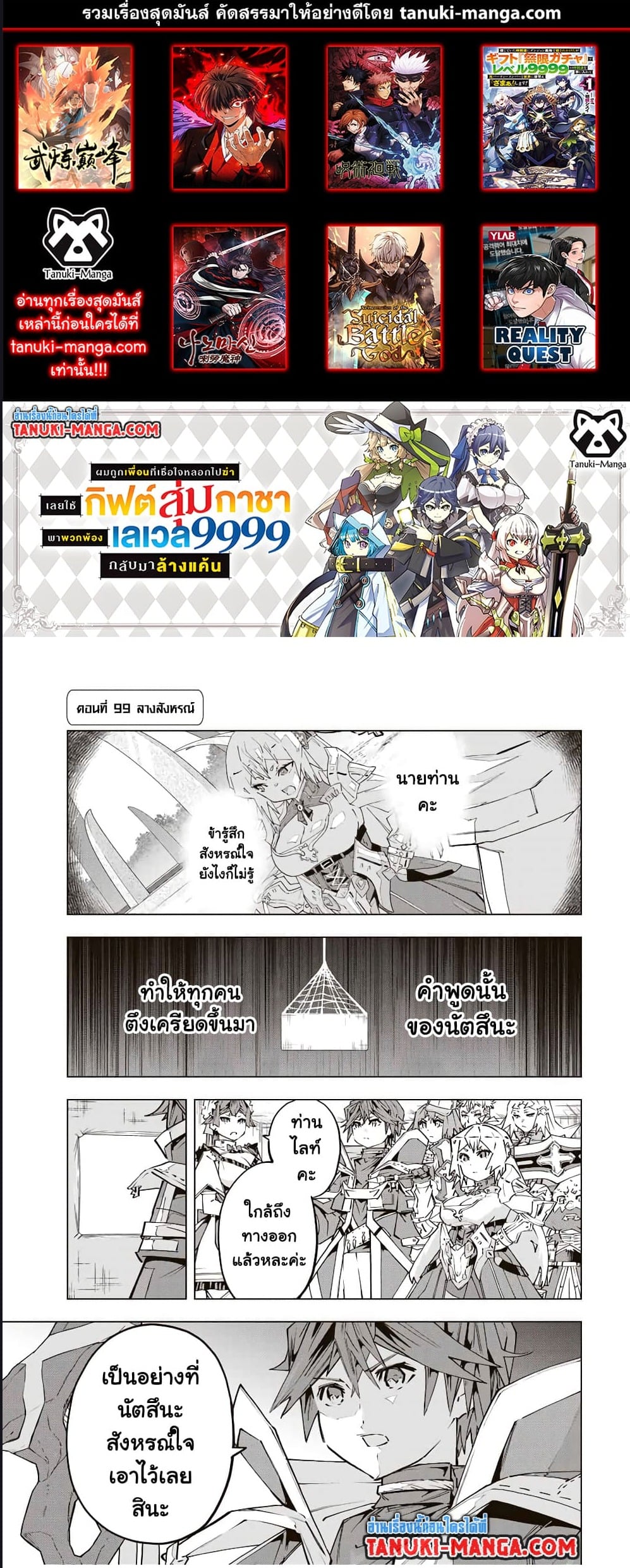 My Gift LVL 9999 Unlimited Gacha ผมถูกเพื่อนที่เชื่อใจหลอกไปฆ่า เลยใช้กิฟต์สุ่มกาชาพาพวกพ้องเลเวล 9999 กลับมาล้างแค้น ตอนที่ 99 มังงะแปลไทย | Manga DD